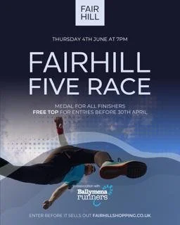 Ballymena Runners presents the Fairhill Five Mile Race sponsored by the Fairhill Shopping Centre.